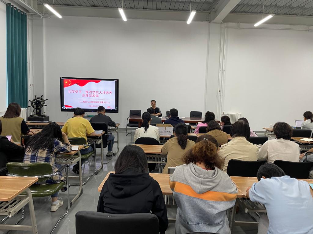 為提升學(xué)院教職工本科審核評(píng)估的認(rèn)識(shí),著力推動(dòng)人才培養(yǎng)高質(zhì)量發(fā)展,6月12日,人工智能與大數(shù)據(jù)學(xué)院院長(zhǎng)劉仁山在行知樓C118會(huì)議室主講關(guān)于《推動(dòng)人才培養(yǎng)高質(zhì)量發(fā)展》的黨課,學(xué)院全體教職工參加。
