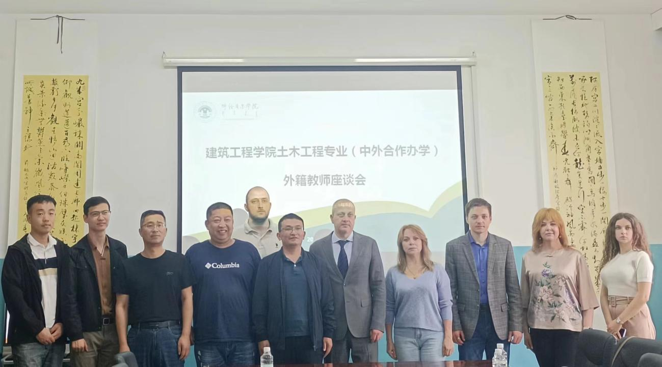 為進一步加強中外教育合作,提升教師跨文化交流能力,6月20日上午,建筑工程學院在篤學樓505會議室舉辦土木工程專業(中外合作辦學)外籍教師座談會。俄羅斯別爾哥羅德國立工藝大學副校長魯斯蘭·瓦列里耶維奇以及語言課外籍教師,建筑工程學院院長姜作杰、黨總支副書記哈達、副院長方明偉以及系主任、相關專業教師參加座談。