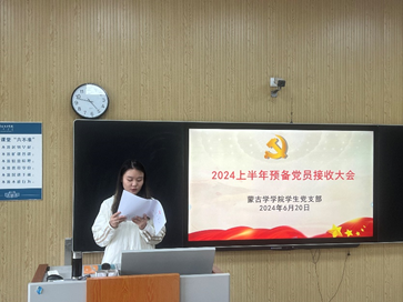 為進一步加強黨員隊伍建設,提高黨員發展質量,保持黨員隊伍先進性和純潔性,6月20日下午,蒙古學學生黨支部召開2024年上半年預備黨員接收大會。學院黨總支書記格根塔娜及全體學生黨員參加會議。會議由學生黨支部書記額爾布樂圖主持。