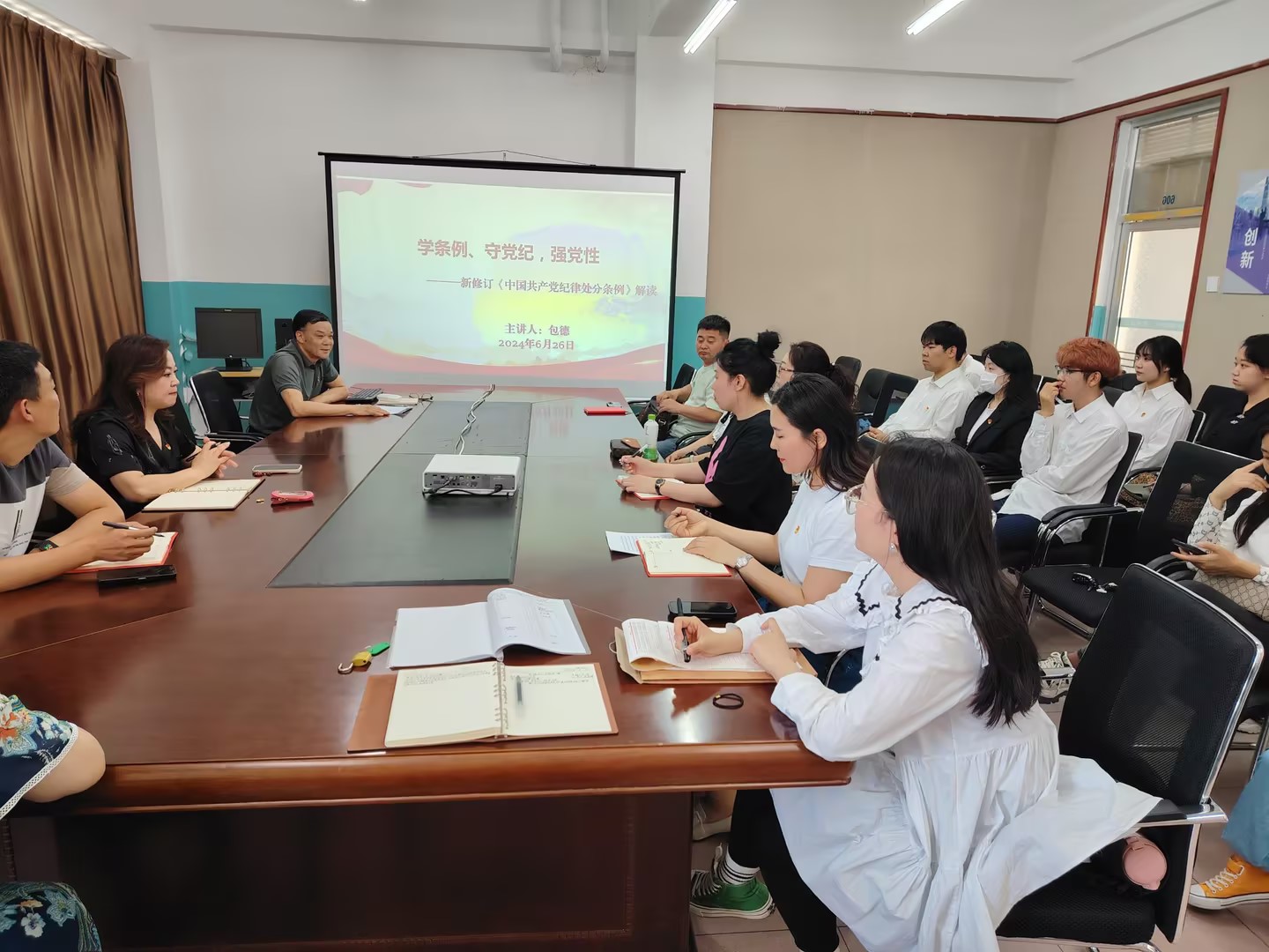 6月26日下午,音樂與舞蹈學院黨總支書記包德在藝術樓606會議室,為師生黨員講授黨紀學習教育專題黨課。