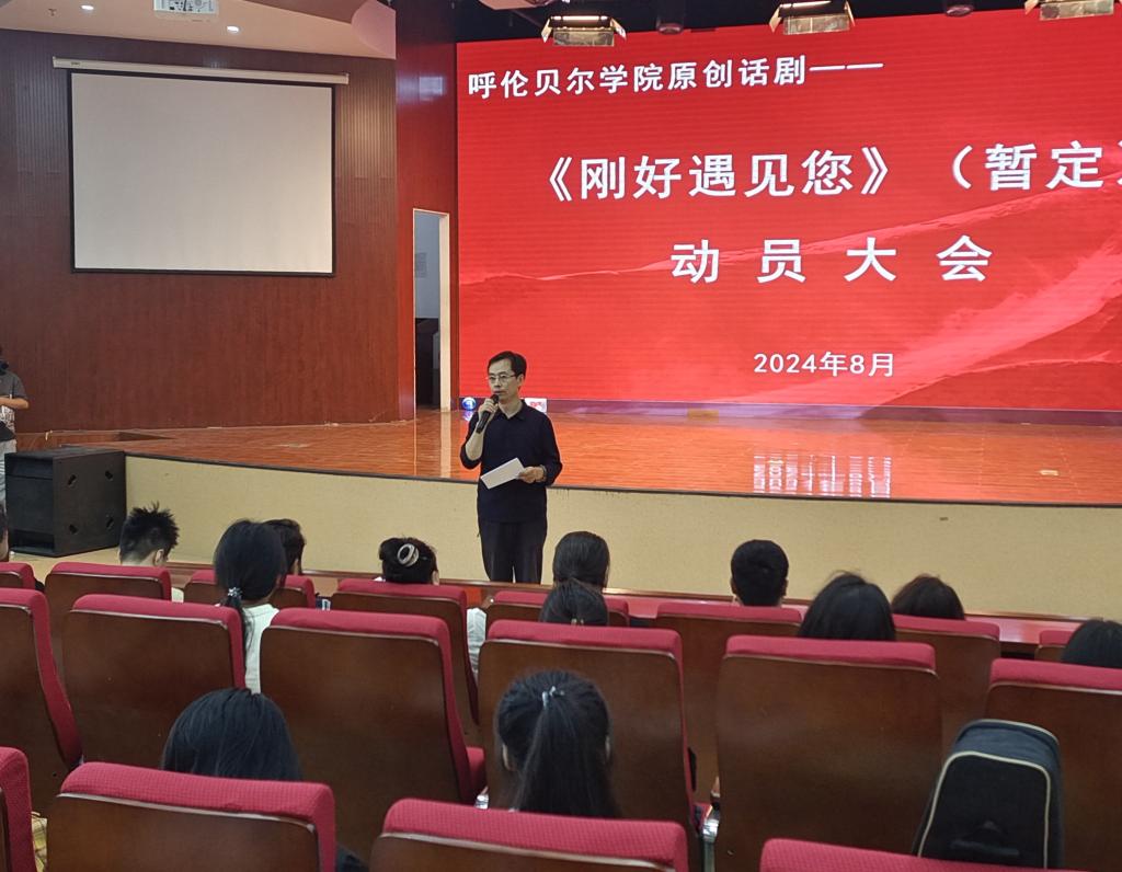 會上,學院黨總支書記核心首先進行了動員講話。他指出,本部話劇的成功申報得到了自治區教育廳、呼倫貝爾市和學校黨委的大力支持及幫助,是對習近平總書記對內蒙古及教育工作的重要指示批示精神的堅決貫徹落實,是彰顯北疆特色、呼院特色的扛鼎之作,校領導高度重視并多次過問話劇進展。因此,他強調并要求話劇主創團隊及所有參演人員務必要有強烈的政治意識、大局意識、責任意識,務必要用心、用智、用情、用功、用力去完成話劇排演任務,為觀眾呈現一場精彩的藝術盛宴。