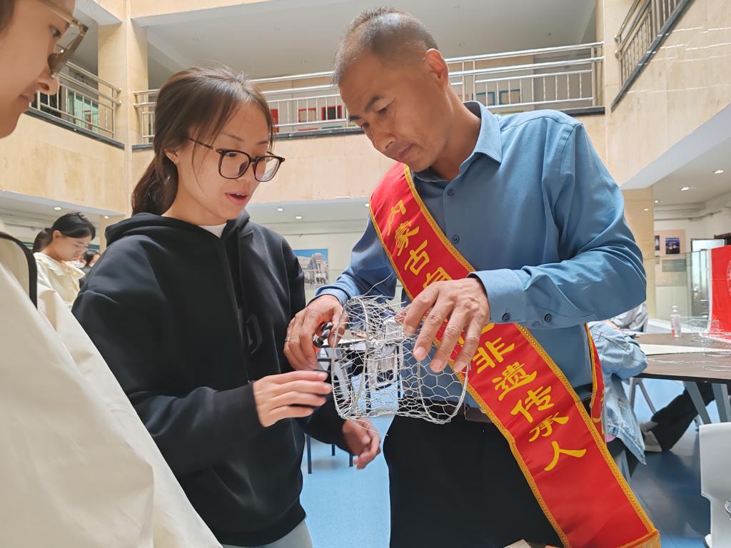 為傳承中華優(yōu)秀傳統(tǒng)文化,促進民族團結(jié),教育學院于9月8日,在藝術(shù)樓一樓大廳開展了“非遺進校園,傳承鐵絲編織燈籠技藝”活動。本次活動特別邀請到了自治區(qū)級非遺傳承人杜學龍老師擔任主講。教育學院黨總支副書記吳怡、“巧手藝族”手工藝社團指導教師及全體成員參加了本次活動。