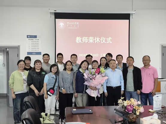 最后,由新進教師代表蔡爽為榮休教師王曉霞獻上鮮花,以表敬意。與會教師代表積極踴躍發言,暢談自己對教師職業的感悟和體會,紛紛表示要向王曉霞老師學習為學、為事、為人的精神,切實擔負起新時代育人使命,為學院各項事業高質量發展貢獻力量。