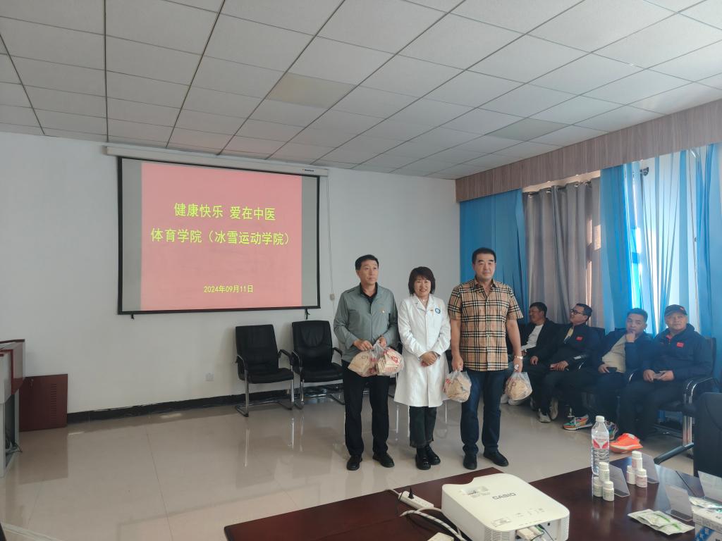 為鑄牢中華民族共同體意識,弘揚中華優秀傳統文化,促進健康生活理念的傳播,9月11日下午,體育學院(冰雪運動學院)與呼倫貝爾市中蒙醫院聯合舉辦了以“健康快樂 愛在中醫——中醫藥文化進校園”為主題的結對共建主題黨日。學院黨總支書記胡日查、院長李曉峰、副院長林劍冬及全體教師,呼倫貝爾市中蒙醫院黨委委員、副院長李紅及各科室醫師參加了活動。