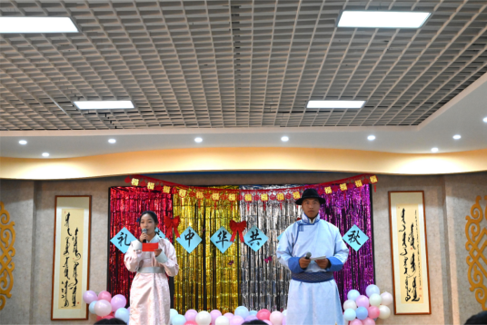 活動中,同學們紛紛展示了自己的才藝,歌聲悠揚,仿佛能穿透云霄,訴說著對美好生活的向往;舞蹈靈動,似翩翩起舞的蝴蝶,用優美的舞姿展現著青春的活力。他們的表演,贏得了全場陣陣掌聲和歡呼聲。在游戲娛樂的環節中,學生們沉浸在游戲中,忘卻了煩惱,增進了彼此的友誼。恰逢中秋節,活動還特別設置了切月餅的環節,師生們同坐在一起,品嘗著月餅,分享著這份團圓的甜蜜。格根塔娜發表了講話,表達了對同學們節日的祝福,并對本次活動進行了總結。