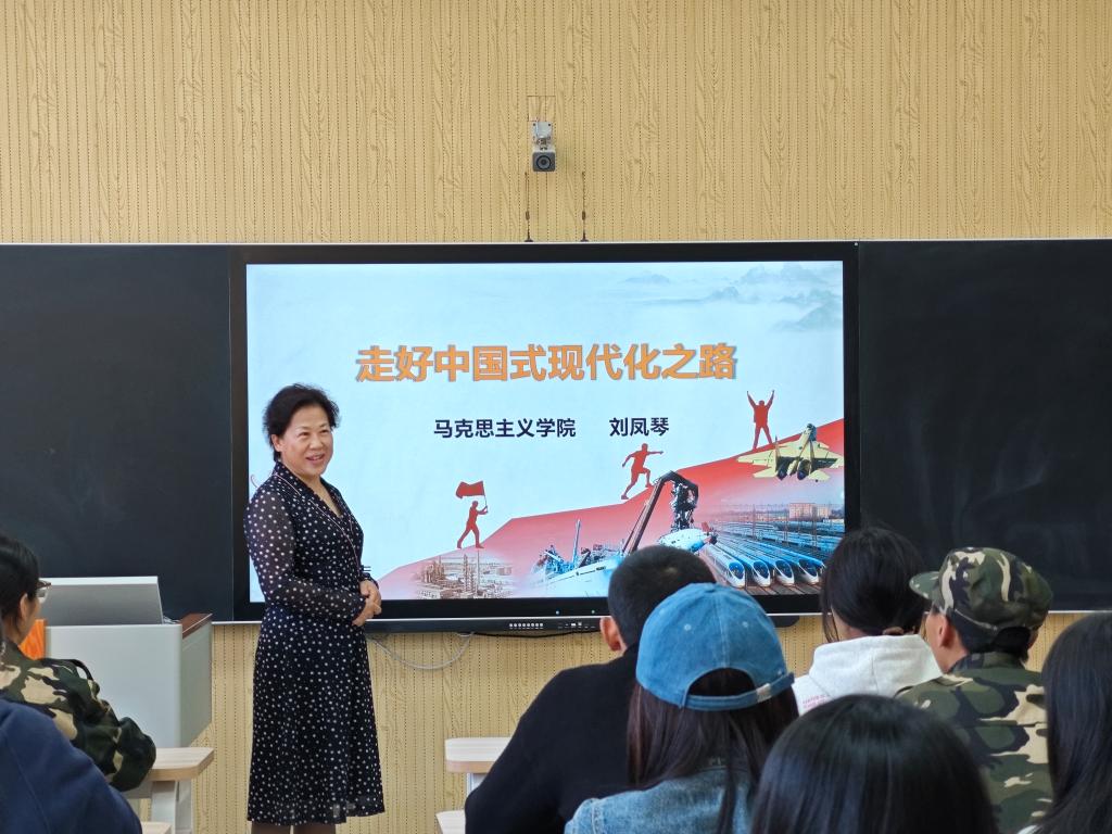 講座圍繞三個方面展開:一是中國式現代化的探索;二是中國式現代化的特征;三是中國式現代化的本質要求。劉鳳琴用具體形象生動的實例,深入淺出地對中國式現代化的特征和本質要求做了詳細分析闡釋,幫助學生充分認識到中國式現代化與西方現代化的本質區別,世界上既不存在定于一尊的現代化,也不存在放之四海而皆準的現代化標準,一個國家,一個民族,只有找到適合自己條件的道路,才能實現自己的發展目標。黨的十八大以來,黨成功推進和拓展中國式現代化,中華民族偉大復興進入不可逆轉的歷史進程。