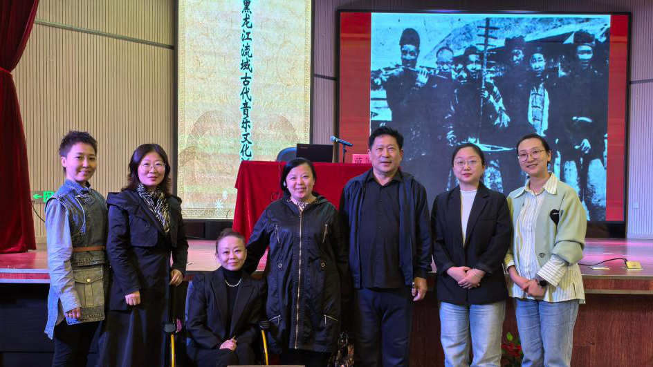 苗笛圍繞黑龍江流域古代音樂的歷史淵源與發展脈絡、不同民族在黑龍江流域創造的音樂特色、弓弦樂器在大興安嶺的起源等五個方面對黑龍江流域古代多元音樂文化的形成過程進行了深入解讀。講座中,他鼓勵師生在采風過程中深入生活,扎根人民、描繪人民,將基層老百姓的心聲與情感滲入到藝術創作中,以打造出時代精品。此外,他還結合自己多年的研究成果和實地考察經歷,為聽眾展示并演奏六弦胡琴,不僅讓聽眾更加直觀地了解該樂器,也進一步激發了學生們對民族音樂領域的研究興趣和熱情。