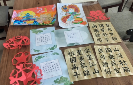 活動(dòng)中,各位教師黨員齊聚一堂,在一片和諧歡樂的氣氛中開啟了精彩紛呈的藝術(shù)創(chuàng)作之旅,通過自己擅長(zhǎng)的方式向祖國(guó)表達(dá)了祝福。有的老師精心裁剪出一幅幅寓意吉祥如意、國(guó)泰民安的作品,每一件成品都承載著對(duì)祖國(guó)母親最美好的祝愿;有的老師揮灑著筆觸,將心中那份對(duì)于美好生活的向往以及對(duì)中國(guó)未來發(fā)展的無限憧憬淋漓盡致地展現(xiàn)出來;有的老師沉心靜氣地練習(xí)著行書、楷書等字體,一筆一劃間流露出深厚的文化底蘊(yùn)及對(duì)中華優(yōu)秀傳統(tǒng)文化的熱愛之情;有的老師則書寫個(gè)人成長(zhǎng)經(jīng)歷,或抒發(fā)對(duì)祖國(guó)繁榮昌盛的美好愿景。隨后,大家輪流展示自己的作品,并與其他成員進(jìn)行了深入交流探討。