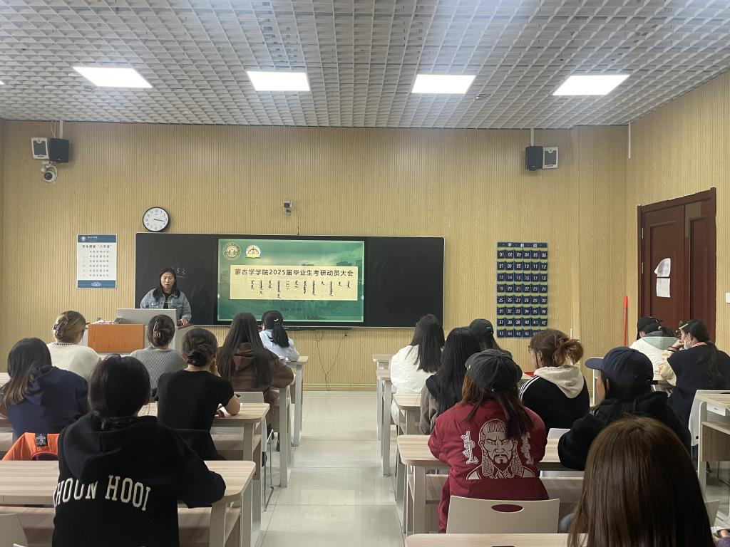 10月9日下午,蒙古學學院在崇文樓B228教室召開了2025屆考研動員大會。此次大會旨在幫助大三學生全面了解考研的基本情況,提前鎖定考研目標,明確備考計劃,并有效解決備考過程中可能遇到的各種困難和問題。學院副院長小花、學業導師徐紅云參會,共同為同學們加油鼓勁。大會由實驗實訓中心主任烏云斯琴主持。