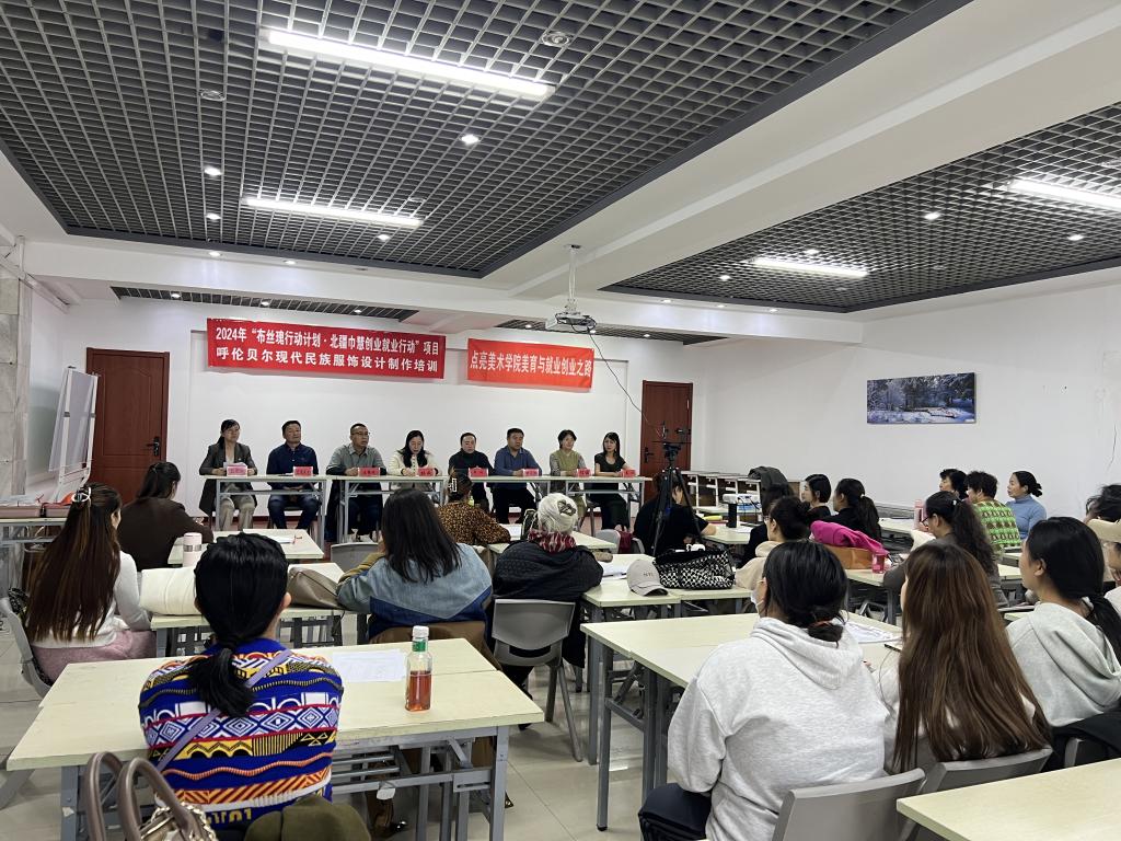 10月16日,2024年“布絲瑰行動(dòng)計(jì)劃·北疆巾慧創(chuàng)業(yè)就業(yè)行動(dòng)”項(xiàng)目呼倫貝爾現(xiàn)代民族服飾設(shè)計(jì)制作培訓(xùn)在美術(shù)學(xué)院舉辦了開班儀式。呼倫貝爾市婦聯(lián)四級調(diào)研員楊威、鑫衣北方原創(chuàng)服飾設(shè)計(jì)師姜心、呼倫貝爾學(xué)院美術(shù)學(xué)院黨總支書記巴達(dá)日呼、黨委宣傳部副部長白玫、教務(wù)處副處長王繼剛、招生就業(yè)處副處長杜志闖、美術(shù)學(xué)院公共美育教研室主任桂麗以及30名培訓(xùn)學(xué)員參加了此次開班儀式,呼倫貝爾市婦聯(lián)權(quán)益和發(fā)展聯(lián)絡(luò)部部長包迪婭主持。