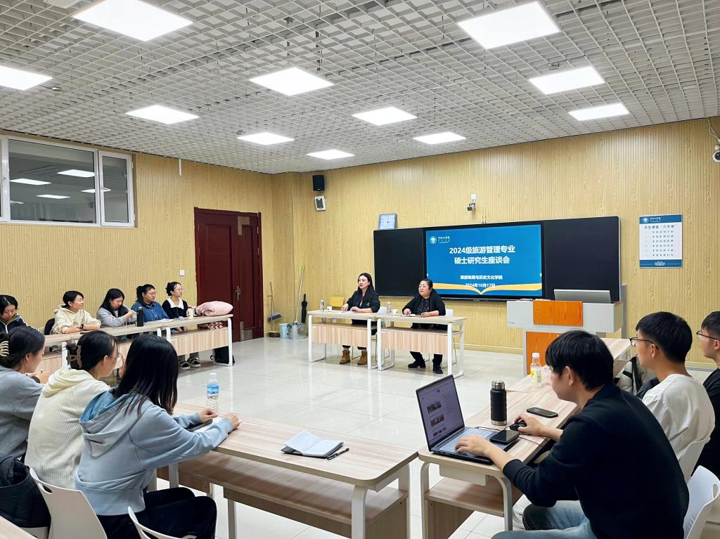 10月17日下午,旅游地理與歷史文化學(xué)院在崇文樓402教室召開了學(xué)生座談會。學(xué)院黨總支副書記王宏霞、副院長徐舒靜和2024級旅游管理專業(yè)碩士研究生參加了此次座談會。