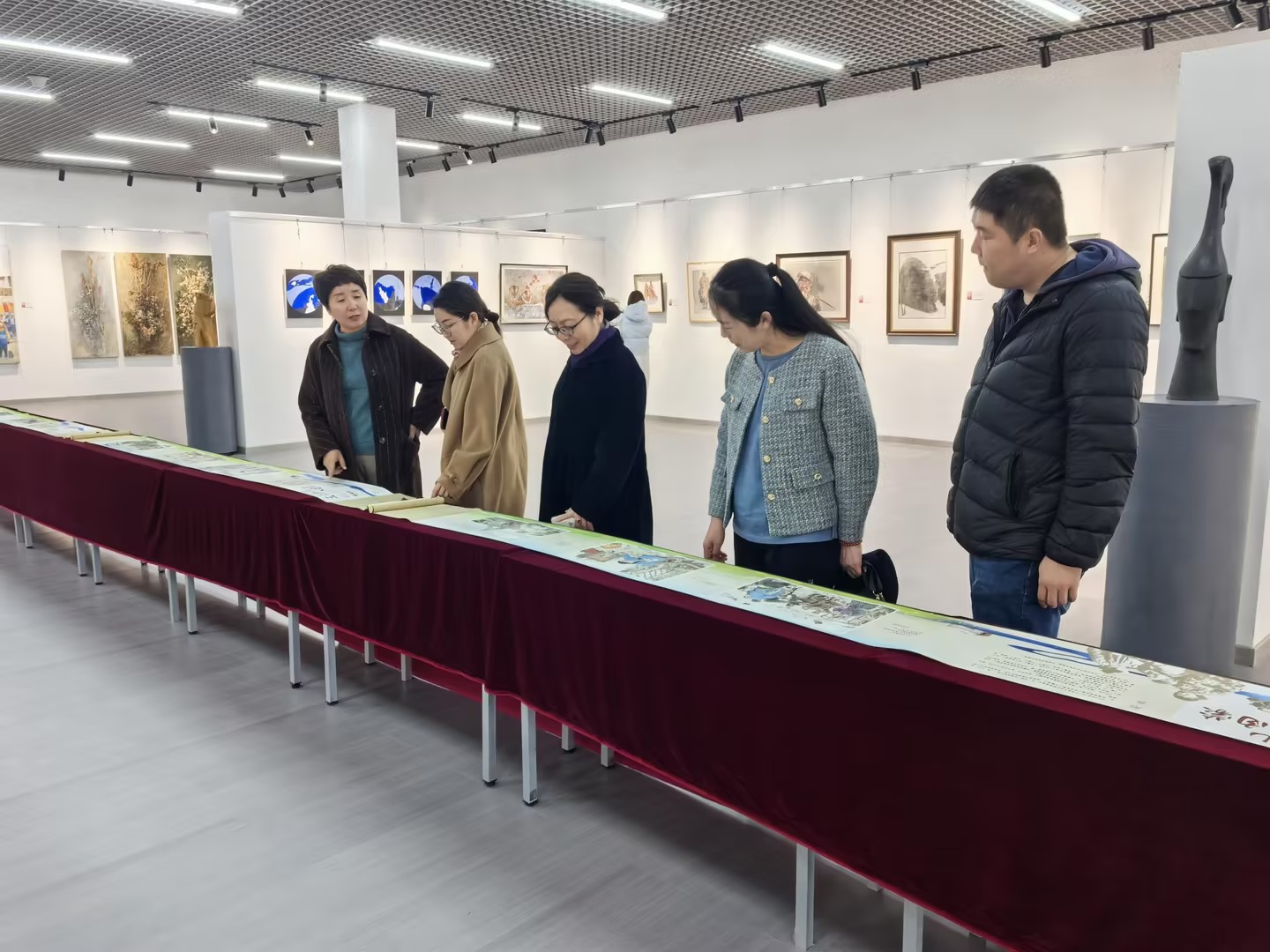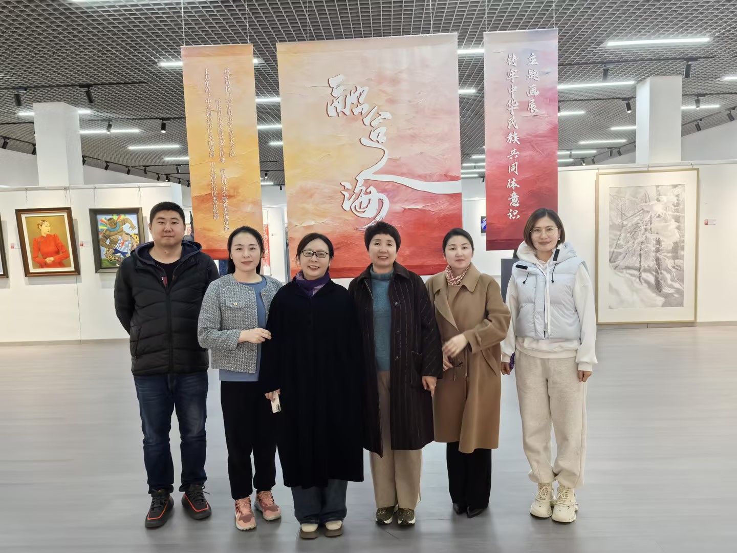 學院黨總支書記王國華領學了《習近平總書記在慶祝中華人民共和國成立75周年招待會上的講話》和《習近平總書記在國家勛章和國家榮譽稱號頒授儀式上的講話》內容。她強調,中華民族是一個大家庭,各民族之間要相互尊重、相互理解、相互包容,鑄牢中華民族共同體意識,共同維護國家的統一和民族的團結。全體黨員要深入學習黨的民族政策,積極踐行民族團結進步事業,為構建中華民族共有精神家園貢獻力量。隨后,學院全體黨員參觀了由海拉爾區委統戰部、宣傳部,呼倫貝爾學院黨委宣傳部、統戰部主辦,呼倫貝爾學院美術學院協辦的“融合之海”鑄牢中華民族共同體意識主題畫展。