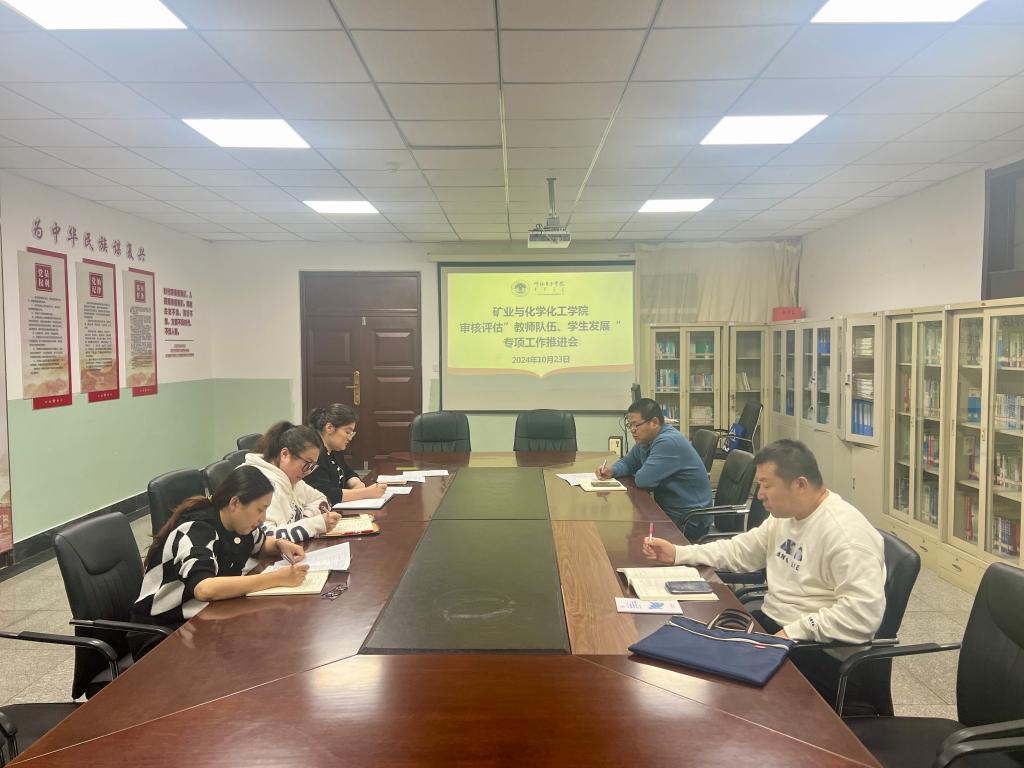 10月23日,礦業與化學化工學院在科技樓422會議室召開了審核評估“教師隊伍、學生發展”專項工作推進會。此次會議旨在確保審核評估工作有序、高效推進,進一步提升學院的教育教學質量和人才培養水平。教師隊伍及學生發展兩個組全體人員參加了會議。