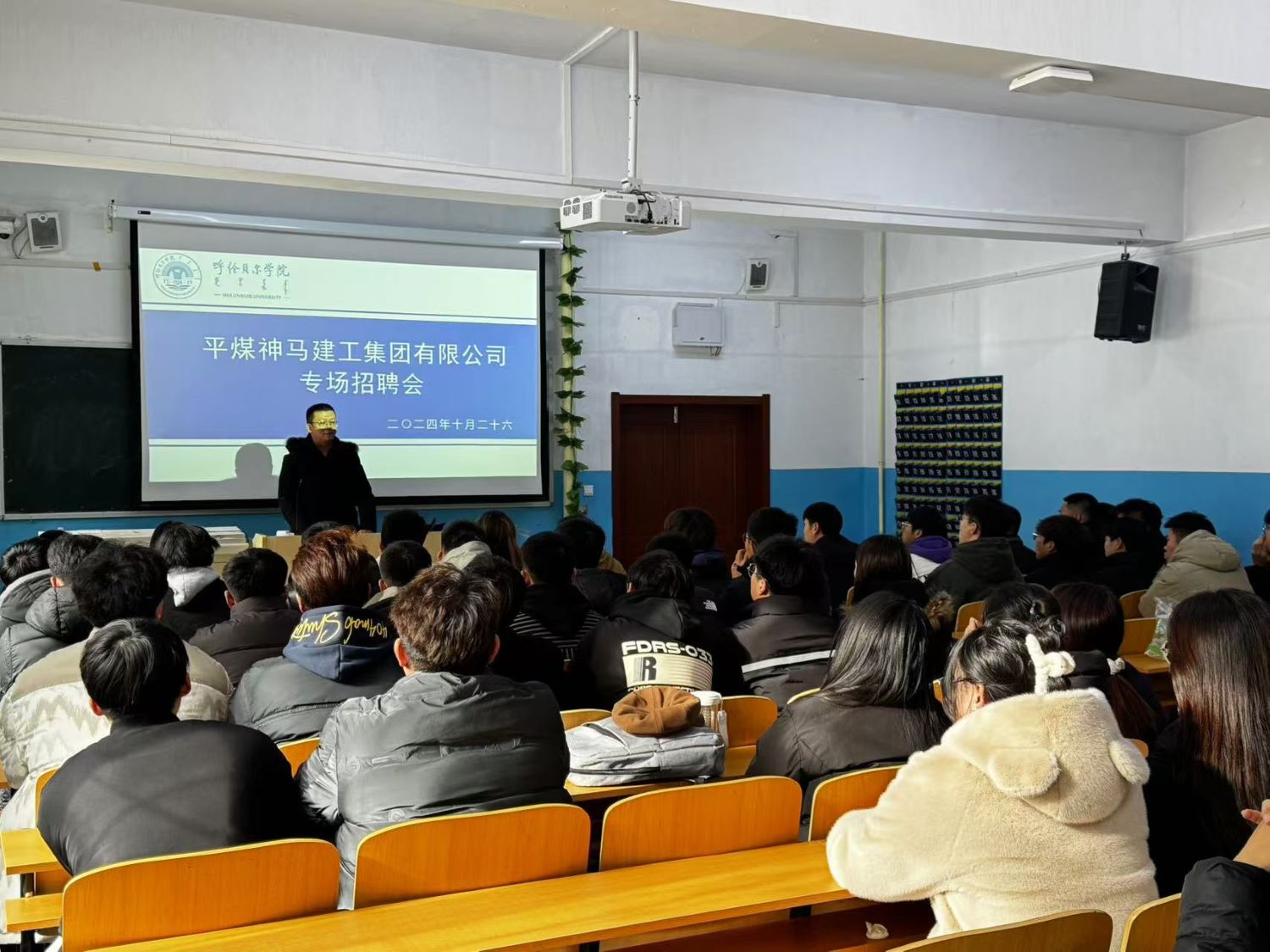 10月26日,平煤神馬建工集團一行兩人來到建筑工程學院,在篤學樓101教室召開專場招聘宣講會,學院2025屆畢業生積極參加了招聘會。
