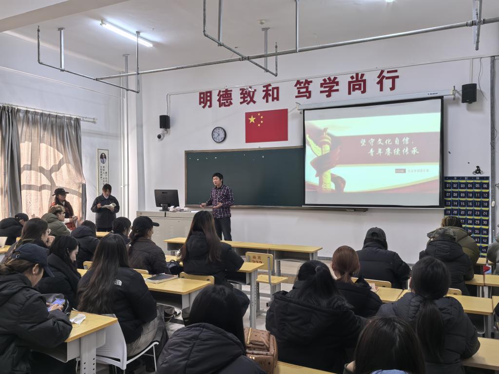 主題團日內容豐富多彩,得到了同學們的共鳴。在教室里,各團支部書記利用PPT的形式,對豐富的歷史資料進行講解,帶領青年團員穿越時空,回顧中華民族輝煌燦爛的歷史文化,深刻理解傳統文化在當代的價值與意義;利用集體誦讀《論語》《詩經》等經典著作片段,鼓勵大家分享個人感悟,通過文字的力量,激發對傳統文化的熱愛與傳承意識;圍繞如何在新時代背景下創新性地傳承與發展中華優秀傳統文化,開展討論,鼓勵青年團員提出新思路、新想法,為傳統文化的現代轉化貢獻力量。