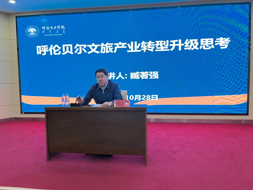 為加強旅游管理專業(yè)碩士點和國家級一流本科專業(yè)建設(shè)點建設(shè),了解呼倫貝爾市旅游業(yè)發(fā)展最新動態(tài),深化校地合作,10月28日,旅游地理與歷史文化學院特邀呼倫貝爾市委宣傳部副部長、呼倫貝爾市文化旅游廣電局黨組書記、局長、呼倫貝爾學院旅游管理碩士研究生行業(yè)導(dǎo)師臧著強在崇文樓A201會議室作專題講座。本次講座由旅游地理與歷史文化學院副院長徐舒靜主持,工學院副院長吳淘鎖、旅游管理碩士點負責人亞吉、旅游管理研究生辦公室主任楊燕燕及旅游管理碩士研究生導(dǎo)師、旅游學系專任教師、旅游管理碩士研究生、本科生共140余人聆聽講座。