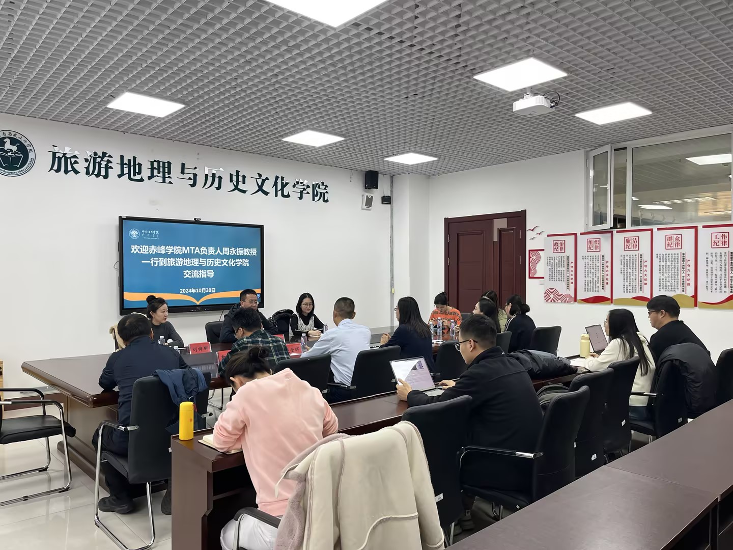 10月30日,赤峰學院法學與商務學院副院長、MTA負責人周永振教授一行3人來我校旅游地理與歷史文化學院交流。學院黨總支書記趙金輝,副院長徐舒靜、郭恩亮,旅游管理碩士點負責人亞吉,旅游管理研究生辦公室工作人員及旅游學系專任教師、旅游管理碩士研究生代表參加了交流座談。