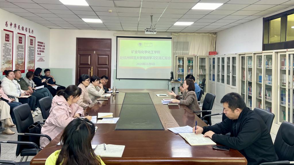 11月6日下午,礦業(yè)與化學(xué)化工學(xué)院在會(huì)議室召開赴杭州師范大學(xué)培訓(xùn)學(xué)習(xí)交流匯報(bào)會(huì)。此次匯報(bào)會(huì)旨在分享教師們?cè)诤贾輲煼洞髮W(xué)材料與化學(xué)化工學(xué)院調(diào)研學(xué)習(xí)的成果,進(jìn)一步擴(kuò)大本次培訓(xùn)的受益面。學(xué)院全體教職工參加了本次交流匯報(bào)會(huì)。