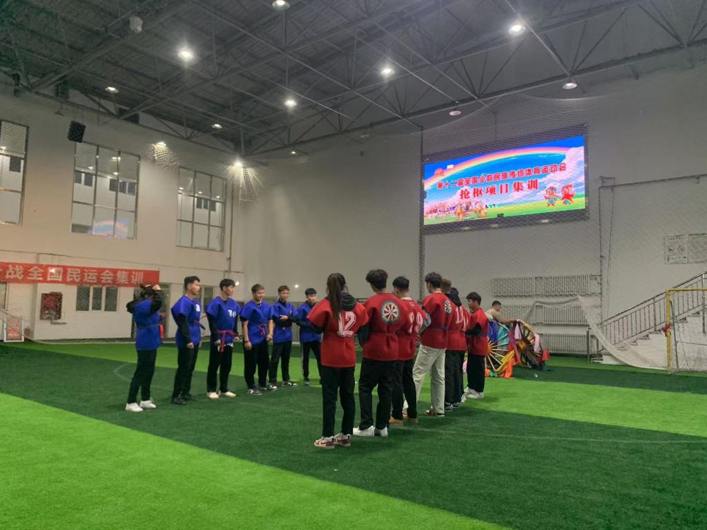 在全面介紹場地比賽規則及流程后,鄂溫克族自治旗“搶樞”代表隊為現場觀眾呈現了一場精彩的現場演示。呼倫貝爾學院體育學院(冰雪運動學院)的師生們也踴躍參與體驗活動,共同感受比賽的緊張氛圍與刺激體驗,為即將參加第十二屆全國少數民族傳統體育運動會的鄂溫克族自治旗“搶樞”代表隊加油鼓勁。