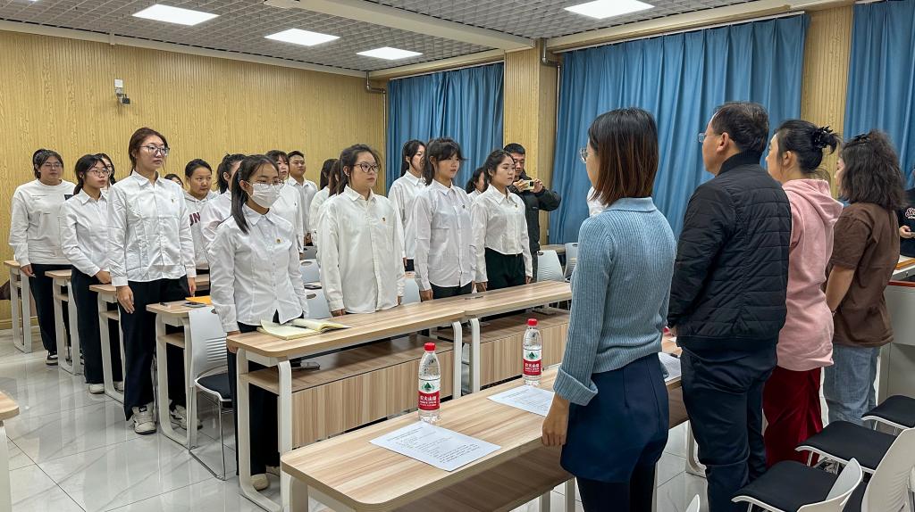 張雪瑩宣讀《呼倫貝爾學院教育學院第六期青年馬克思主義培養工程大學生骨干培訓班工作方案》,希望同學們勇擔時代責任和歷史使命,爭做“有理想、敢擔當、能吃苦、肯奮斗”的新時代青年,以飽滿的熱情和昂揚的斗志,積極投身強國建設、民族復興偉業當中。