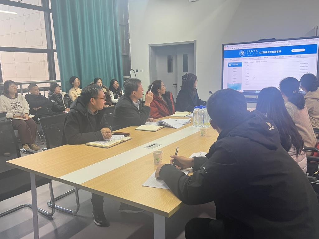 11月6日下午,學校評建辦公室主任娜布其一行深入人工智能與大數據學院調研指導本科教育教學審核評估工作。學院院長劉仁山、副院長耿衛江、環節干部、系部負責人、評估工作組成員及教師代表參加會議。