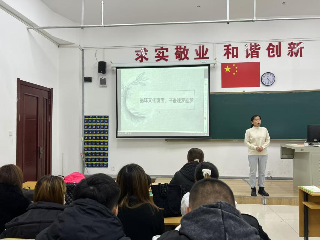 分享會(huì)最后,孔春艷作了總結(jié)發(fā)言。她提到,書籍是人類智慧的結(jié)晶,是文化傳承的重要載體。在這個(gè)快節(jié)奏的時(shí)代,我們更需要靜下心來,通過閱讀,去品味那些跨越時(shí)空的文化瑰寶,讓書香成為我們逐夢路上的燈塔。并建議同學(xué)們要養(yǎng)成愛讀書的習(xí)慣,誦經(jīng)典、讀好書,在閱讀中尋找快樂,獲得成功。