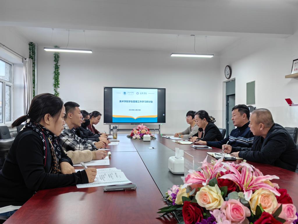 11月19日,美術學院在尚行樓309會議室召開學生管理工作學習研討會。學院領導班子成員及全體專兼職輔導員參加了學習研討會。會議由學院黨總支副書記張巍巍主持。