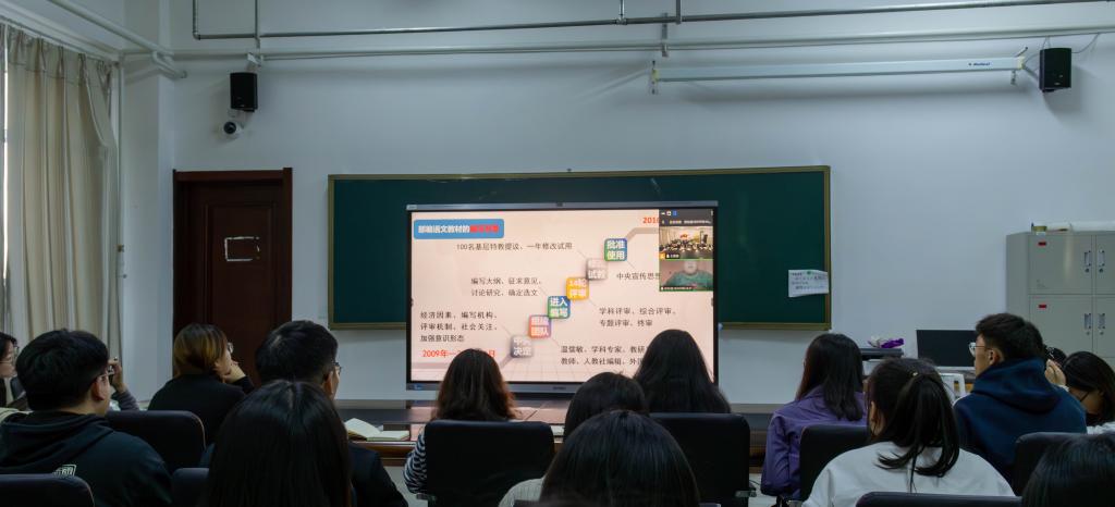 分享會上,張東旭以尋蹤、明晰、運用三個關鍵詞為主線,詳細分享了教師工作坊成立的初心,細致介紹了教師招聘考試面試技巧,系統分析了初中語文6冊教材的框架及教學策略。講座一氣呵成,歷時3個小時,共計101頁課件,從大單元教學、群文閱讀、整本書閱讀到單篇教學,張東旭以生動的語言、豐富的案例、鮮活的實例為與會師生帶來了一場知識的饕餮盛宴。