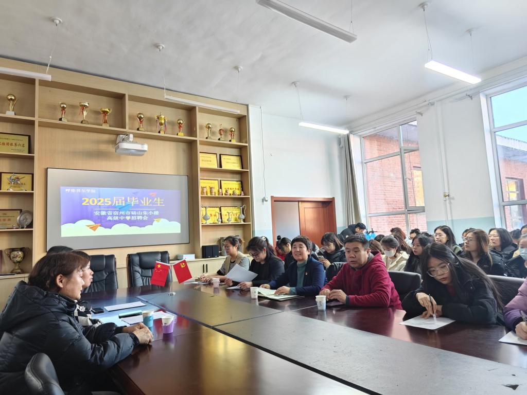 11月19日,招生就業處與外國語學院和安徽省宿州市碭山朱小樓高級中學在師專樓301會議室成功舉辦了招聘會議。招生就業處副處長杜志闖和外國語學院黨總支書記王國華,朱小樓高級中學校長郭艷麗及其團隊成員、外國語學院輔導員海艷及2025屆全體俄語畢業生參加了招聘活動。