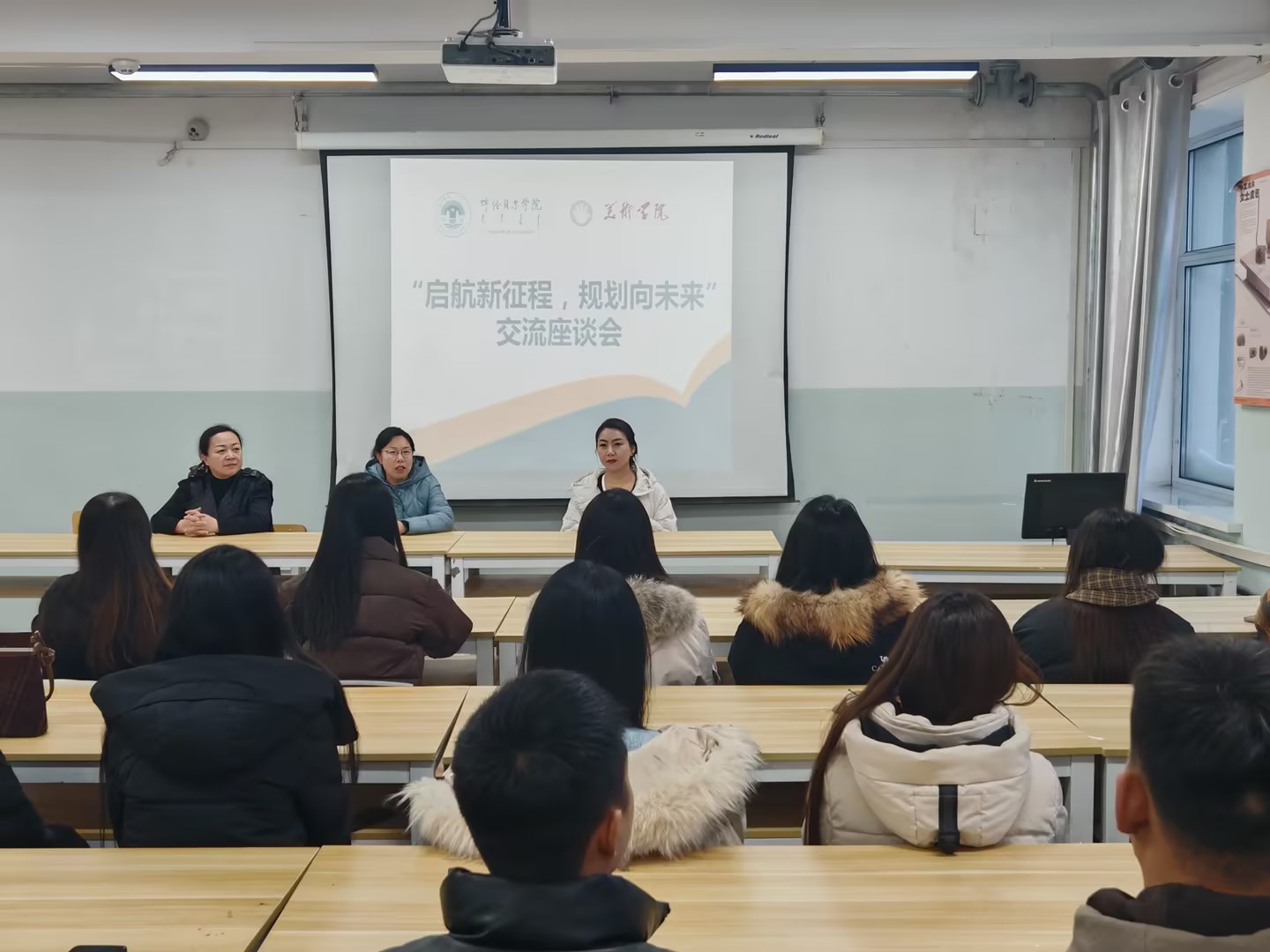 為深入了解學(xué)生學(xué)習(xí)、生活情況,更好地關(guān)愛(ài)學(xué)生、答疑解惑、解決問(wèn)題,指導(dǎo)班級(jí)建設(shè),培養(yǎng)優(yōu)良的班風(fēng)、學(xué)風(fēng),為班級(jí)發(fā)展及學(xué)生成長(zhǎng)提供指導(dǎo)與支持,11月28日,呼倫貝爾學(xué)院圖書(shū)館黨總支書(shū)記彬彬來(lái)到聯(lián)系班級(jí)2021級(jí)環(huán)境設(shè)計(jì)班,開(kāi)展了“啟航新征程,規(guī)劃新未來(lái)”交流座談會(huì)。美術(shù)學(xué)院黨總支書(shū)記巴達(dá)日呼、副書(shū)記張巍巍,學(xué)院教師任晶及2021級(jí)環(huán)境設(shè)計(jì)班全體學(xué)生參會(huì)。