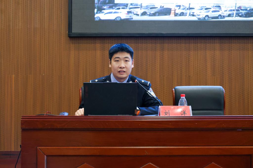 隨后,劉洋為師生作“點亮法之燈塔、無悔校園青春”法治講座。他結合校園典型案例,用通俗易懂的語言和學生喜聞樂見的形式,為同學們普及憲法、治安管理處罰法以及刑法條例等內容,激發學生學法熱情,增強學生法治意識和法治素養。現場還進行了反詐宣傳教育,進一步強化學生“反詐防詐”安全意識,切實提高識詐能力。與會學生認真聽講,積極參與現場互動環節,將法治知識入腦入心入行。