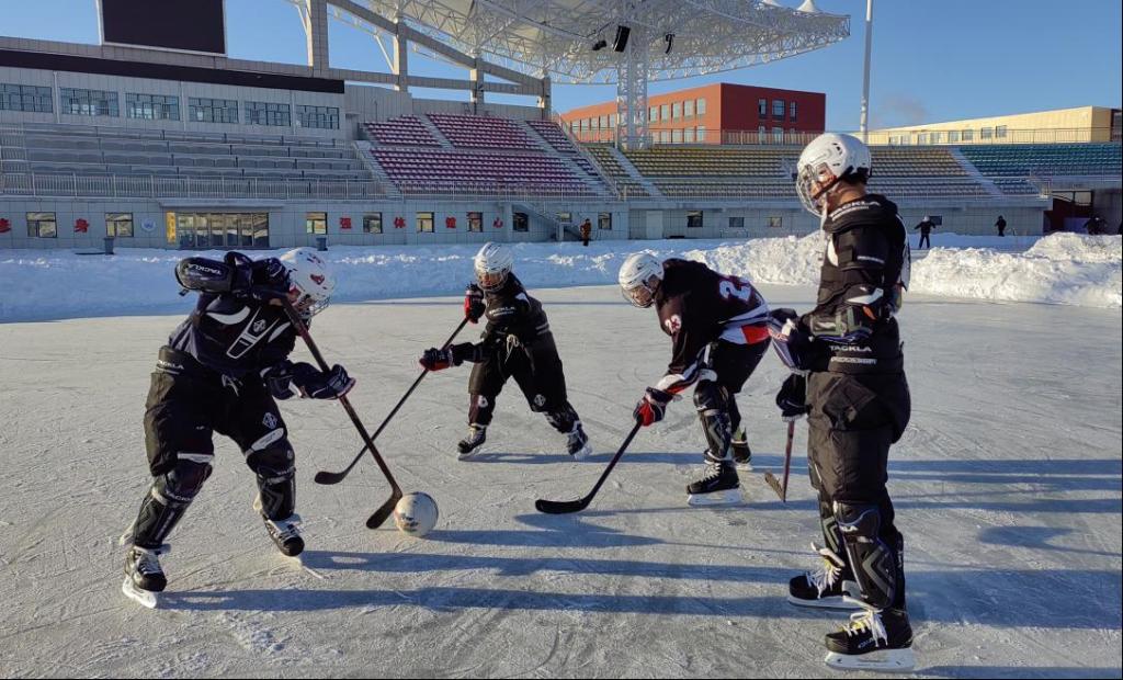 冰球課是學院冰雪運動專業的必修課程。在課堂上,教師不僅傳授擊球、傳球、防守等技巧,更注重團隊協作與競技精神的培養,學生們在碰撞與拼搏中領悟體育的力量與魅力,冰球棍與冰球的撞擊聲,恰似他們青春活力的戰歌。