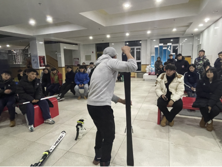 開課前,老師們為同學們詳細講解了滑雪的基本知識,包括雪板的結構與使用方法、滑雪姿勢的要點、如何控制速度與方向以及安全注意事項等。