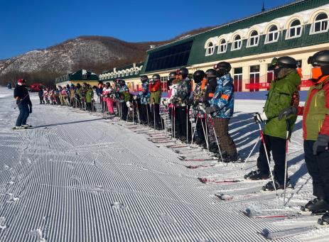 在雪道上,同學們已身著鮮艷的滑雪服,腳蹬雪板,手持雪杖,滿懷激情地齊聚滑雪場。他們身姿矯健,眼神中透露出對即將開始的滑雪課程的期待與渴望。這些年輕的學子們,來自不同的專業和年級,因滑雪課而匯聚于此,共同踏上冰雪運動的征程。