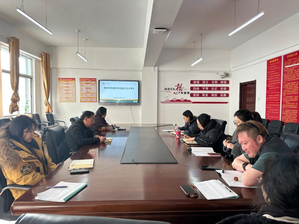 為進一步加強學生思想政治教育工作隊伍業務素養,不斷提高輔導員工作能力,12月11日,教育學院在藝術樓210室召開輔導員培訓經驗交流會。學院黨總支書記海江、副書記吳怡,團學辦副主任張晶,團總支書記揭娜和各年級輔導員參加了本次培訓交流。會議由張晶主持。