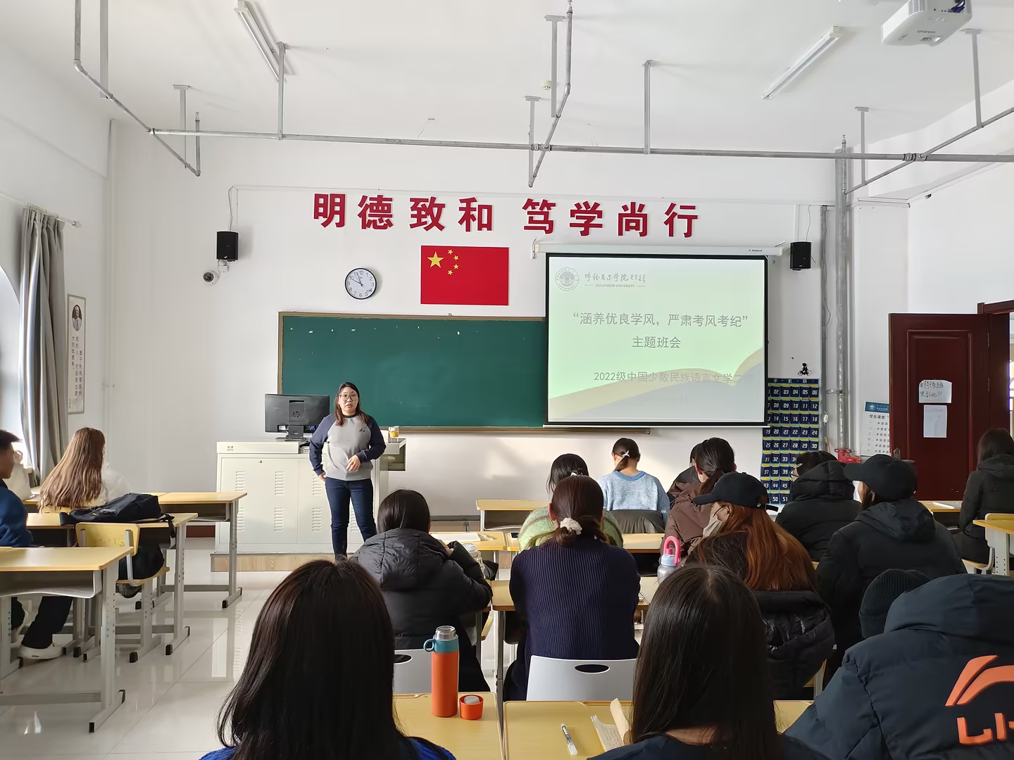 為了進一步強化優良學風建設,共同營造一個公平、公正、誠信的考試環境,蒙古學學院于12月初積極組織各班級開展了“涵養優良學風,嚴肅考風考紀”主題班會。班會由各班學業導師主持,全體學生參加。
