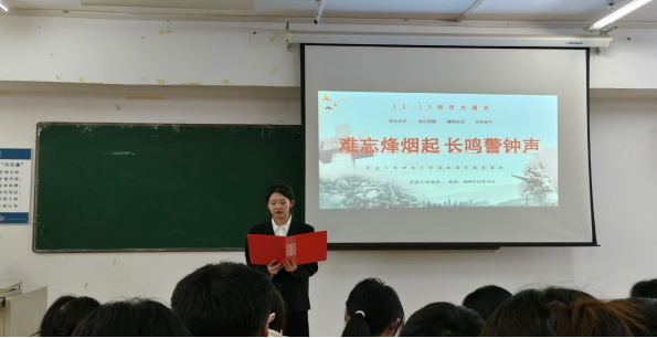 12月13日為南京大屠殺死難者國家公祭日,為了銘記歷史,緬懷遇難同胞,增強(qiáng)學(xué)生們的社會(huì)責(zé)任感、國家榮辱感和民族使命感,12月13日,礦業(yè)與化學(xué)化工學(xué)院化海實(shí)踐宣講團(tuán)在科技樓223教室組織開展“難忘烽煙起,長鳴警鐘聲”主題宣講活動(dòng)。本次活動(dòng)由2024級(jí)化學(xué)工程與工藝一班于昊主持,2024級(jí)化學(xué)班孫雨喬宣講,2022級(jí)、2023級(jí)和2024級(jí)部分學(xué)生參加。