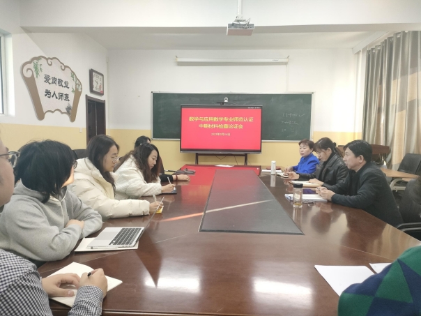 為迎接數(shù)學(xué)與應(yīng)用數(shù)學(xué)專(zhuān)業(yè)師范類(lèi)認(rèn)證中期檢查,按時(shí)完成材料提交,2月14日上午,數(shù)理學(xué)院基礎(chǔ)數(shù)學(xué)系在篤學(xué)樓410會(huì)議室召開(kāi)了數(shù)學(xué)與應(yīng)用數(shù)學(xué)專(zhuān)業(yè)師范類(lèi)認(rèn)證中期材料檢查論證會(huì)。會(huì)議由學(xué)院黨總支書(shū)記楊巧智主持,副院長(zhǎng)包來(lái)友、紅蘭,黨總支副書(shū)記烏日拉,基礎(chǔ)數(shù)學(xué)系主任項(xiàng)楠等教師參會(huì)。