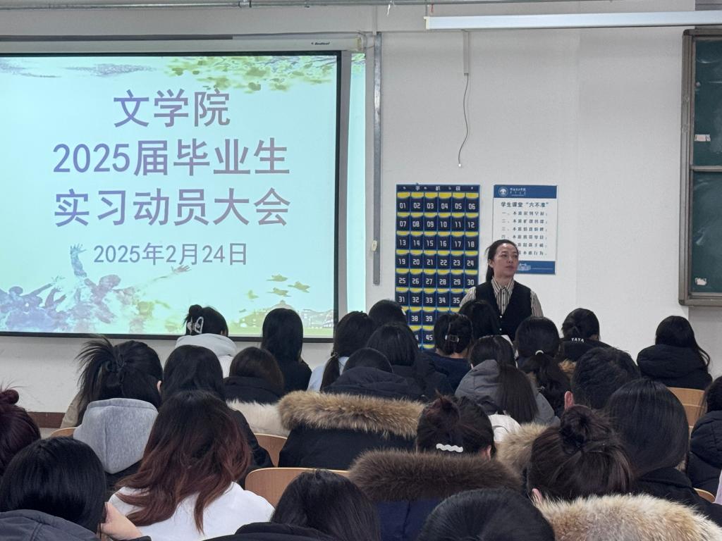 為進一步提升學生的實踐能力,加強理論與實踐的深度融合,2月24日下午,文學院在崇文樓B401會議室舉行了漢語言文學、新聞學、秘書學、語文教育四個專業實習動員大會。實習動員會由學院實驗實訓中心主任劉玉環主持,學院副院長李曉玲、團學辦公室主任烏恩其、四個專業指導教師及2025屆畢業生參加大會。