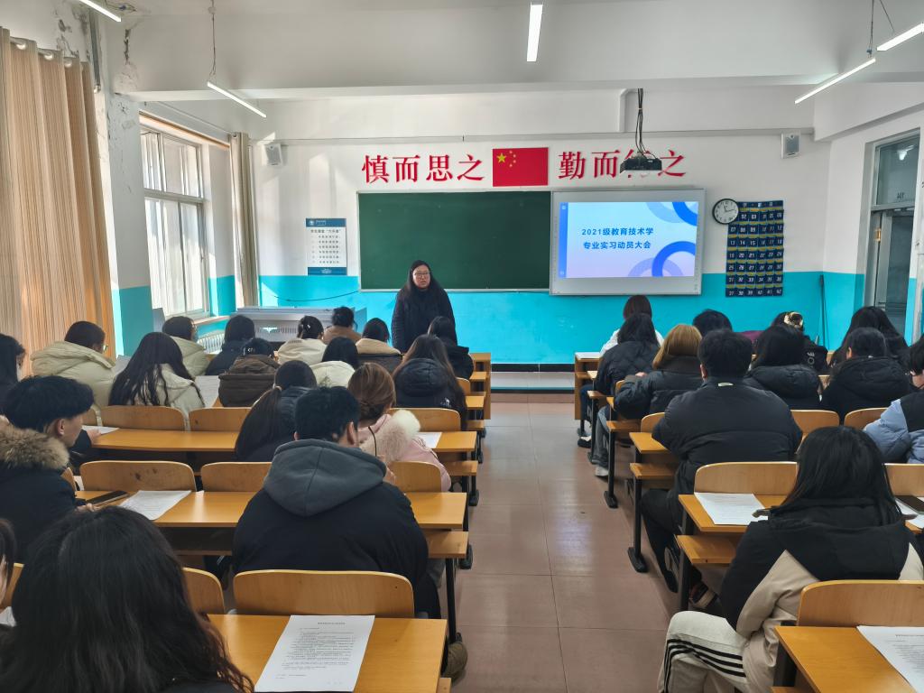 3月17日上午,教育學(xué)院教育技術(shù)學(xué)專業(yè)在藝術(shù)樓104教室召開了2021級(jí)學(xué)生實(shí)習(xí)動(dòng)員會(huì)。系主任郭姣、實(shí)驗(yàn)實(shí)訓(xùn)中心主任雅茹、輔導(dǎo)員娜米爾及2021級(jí)教育技術(shù)學(xué)專業(yè)全體學(xué)生參加了此次會(huì)議。本次動(dòng)員會(huì)旨在明確實(shí)習(xí)目標(biāo)、部署實(shí)習(xí)任務(wù),為即將踏上實(shí)踐征程的學(xué)生提供全面指導(dǎo)。