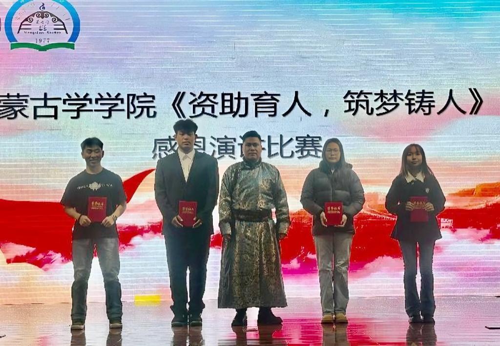 為深入貫徹國家資助政策精神,激勵學(xué)生感恩奮進、自立自強,3月22日上午,蒙古學(xué)學(xué)院在崇文樓小劇場舉辦了以“資助育人,筑夢鑄人”為主題的演講比賽。學(xué)院黨總支副書記孔春艷、團學(xué)辦主任額爾布樂圖、副主任烏日漢及學(xué)業(yè)導(dǎo)師特古斯朝克圖等擔(dān)任評委,100余名學(xué)生到場觀看。