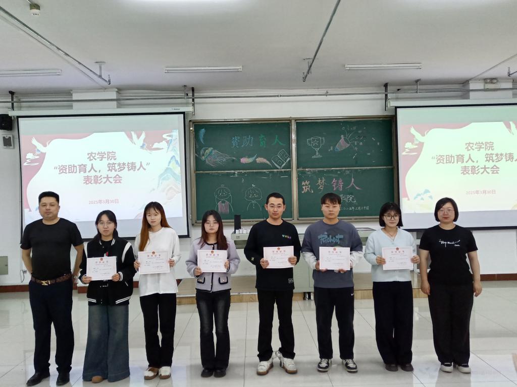 為落實國家資助政策,強化資助育人成效,3月30日,農學院在崇文樓B201室舉辦“資助育人,筑夢鑄人”表彰大會。學院黨總支書記郭晶、副院長姜超、團學辦主任孟額日敦套格、輔導員和2024年度各項獎助學金獲得者參加表彰會。