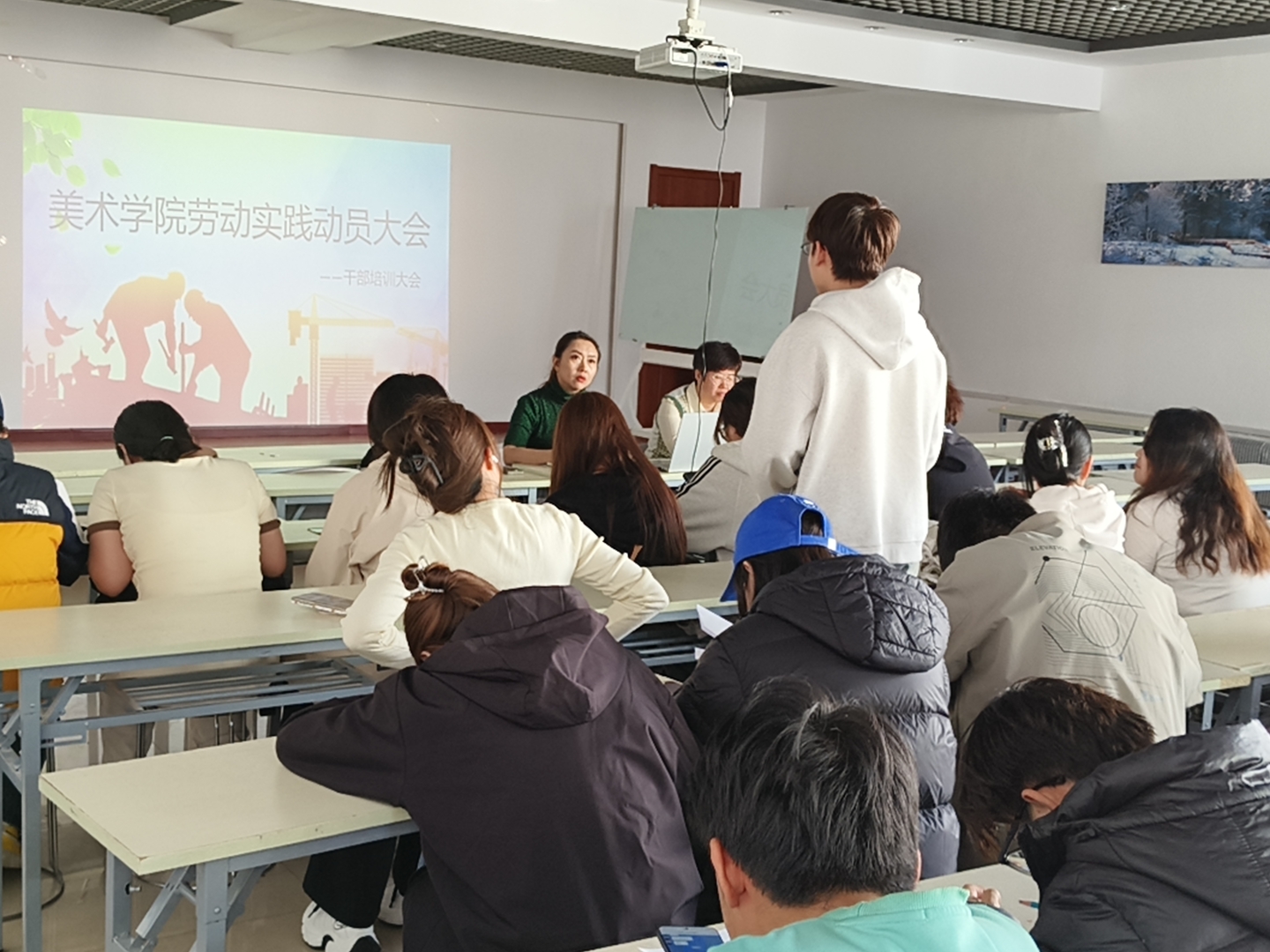 為深化勞動實踐教育成效,提升學生勞動參與度,優化學習生活環境,4月24日,美術學院組織召開勞動實踐教育動員會議。學院團學辦主任郎彩虹、輔導員任晶、學生會干部、各班班長、生活委員及宿舍長參會,共同圍繞勞動實踐與學風建設融合發展展開討論。