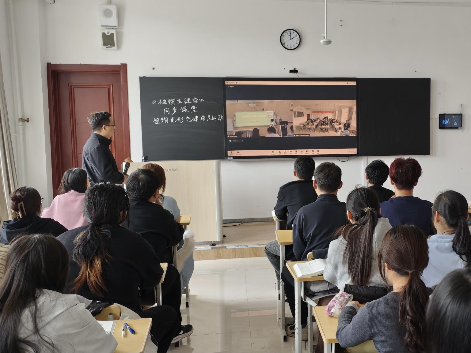 課堂上,王宇珅就本次同步課程內容“植物光形態建成及運動”展開教學,重點講解了光敏色素、藍光受體和紫外光受體三種光受體以及植物的向性運動和感性運動的相關內容。在授課過程中,兩校師生實時互動,共同探討專業知識,充分展現了信息技術與教育教學深度融合的成效,實現了兩校師生同上一堂課的目標。