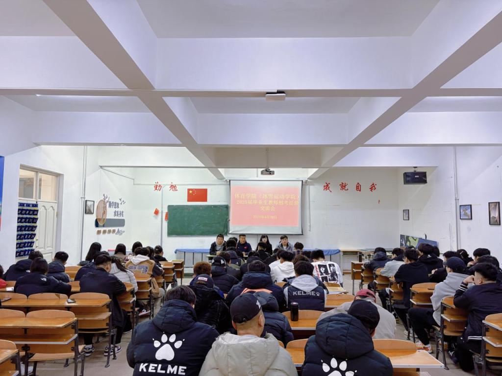 4月28日,體育學院(冰雪運動學院)在體育館二樓舉辦了考研、考編分享會。學院黨總支副書記凌占一,團學辦副主任張娜娜,輔導員朱永生、學峰,三位考研上岸學生李樹選、石文娟、袁夢琦,三位成功考編學生屈佳宇、高云、董迪及2022級全體學生參加了分享會。