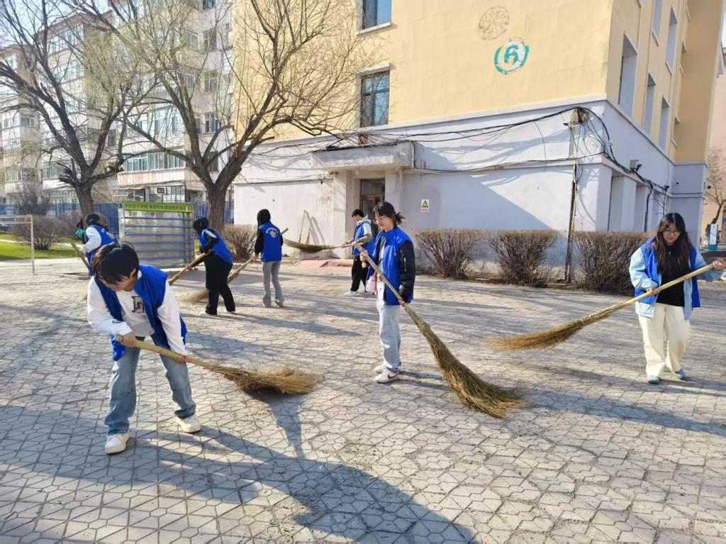 活動當天,同學們手持清潔工具,分組行動,對校園內(nèi)多個區(qū)域進行全面清掃。從宿舍樓門前到校園小徑,他們不放過任何一個衛(wèi)生死角。同學們不怕臟、不怕累,認真清理地面煙頭、清掃落葉等垃圾。勞動過程中,黨員們以身作則,積極主動承擔臟活累活,帶動身邊的積極分子共同投入到勞動中。