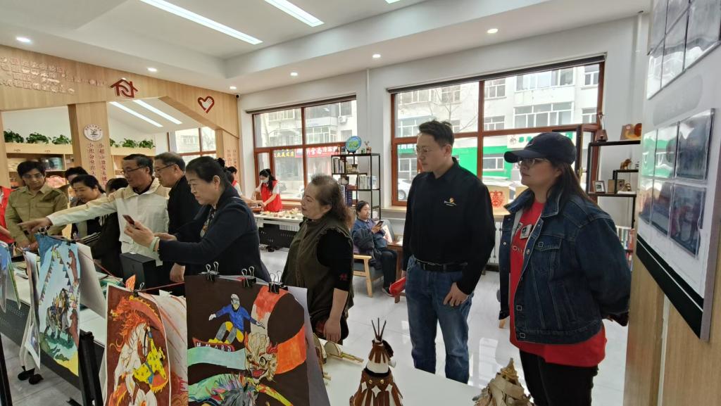 美術學院師生以“北疆文化”展示區為載體,構建起沉浸式美育空間。活動通過海報、展板等視覺媒介,以信息為載體,成為傳播民族團結理念的“美育微課堂”。蒙古族馬鞍、馬鞭等傳統器具作為物質文化符號,經藝術化陳列與情境化敘事,實現從“靜態展品”到“文化讀本”的轉化。圖文展通過數字繪畫、平面設計等藝術形式,將蒙古馬精神、“三北精神”進行視覺化轉譯,使抽象的精神內核具象為可感知、可傳播的文化圖像。學生志愿者認真講解展品背后的民族文化基因,引導居民在審美體驗中感受各民族文化的共生關系,實現“以美啟真”的認知提升。