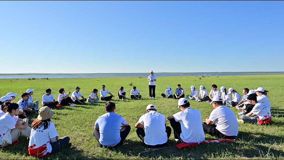 6日,實踐團(tuán)來到新巴爾虎左旗第一邊境管理大隊,與馬背巡防隊隊員們共同開展巡邊活動。這支隊伍的組成多元而專業(yè)——既有邊境派出所的民警,也有來自各嘎查的基層干部和牧民群眾,無論是酷暑還是嚴(yán)寒,他們始終堅守在邊境一線,用責(zé)任守護(hù)著祖國邊境的安全穩(wěn)定。來到第二站吉布胡郎圖邊境派出所,實踐團(tuán)成員與民警一起沿湖巡查,撿拾垃圾,用實際行動守護(hù)這片“草原明珠”。巡湖結(jié)束后,實踐團(tuán)在草原上圍坐成圈,開展了一堂特殊的思政課。沒有黑板和教室,天地就是最好的課堂。成員們相互交流對生態(tài)環(huán)境建設(shè)的認(rèn)識,分享參與環(huán)保行動的感受,深刻領(lǐng)悟到保護(hù)生態(tài)環(huán)境就是保護(hù)我們的美麗家園。