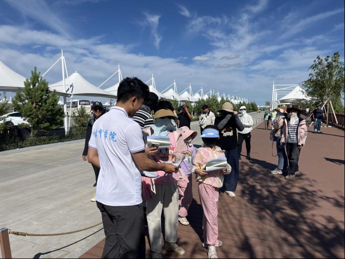 第三站,大家來(lái)到了呼倫湖。同學(xué)們頂著炎炎烈日,沿湖岸線開展環(huán)保行動(dòng):向過往游客和周邊居民發(fā)放呼倫湖環(huán)境保護(hù)宣傳冊(cè),講解湖泊生態(tài)系統(tǒng)的重要性;手持工具,清理塑料垃圾、枯枝等雜物,重點(diǎn)清理草叢中隱蔽的微塑料廢棄物。此次活動(dòng)不僅改善了呼倫湖周邊的環(huán)境衛(wèi)生,更通過廣泛宣傳提升了公眾的環(huán)保意識(shí),為推動(dòng)呼倫湖生態(tài)保護(hù)工作常態(tài)化、長(zhǎng)效化奠定了良好基礎(chǔ)。