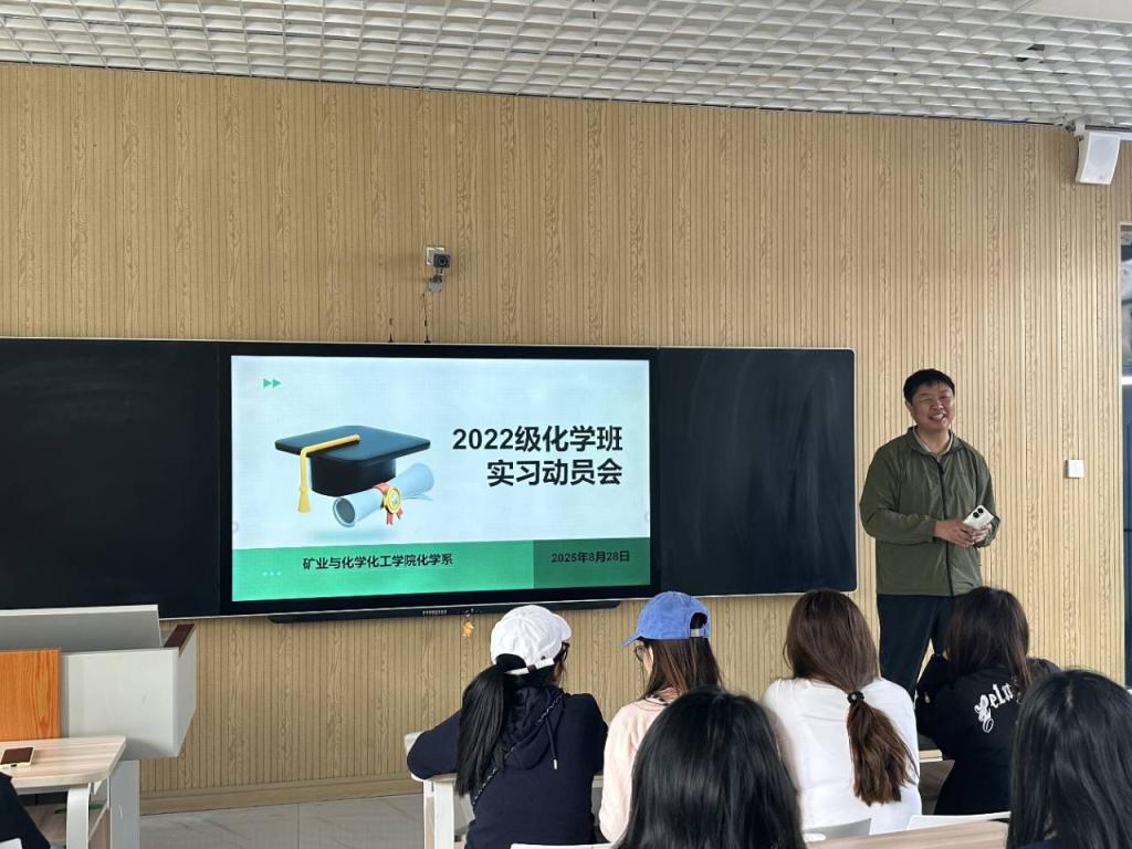 為幫助化學專業學生明確實習目標、規范實習流程、保障實習安全,確保實習工作有序開展,8月28日上午,礦業與化學化工學院在師專樓216教室召開2026屆化學專業教育實習動員會議。學院副院長敖日格樂、化學系主任齊霞及2022級化學專業全體學生參加會議。